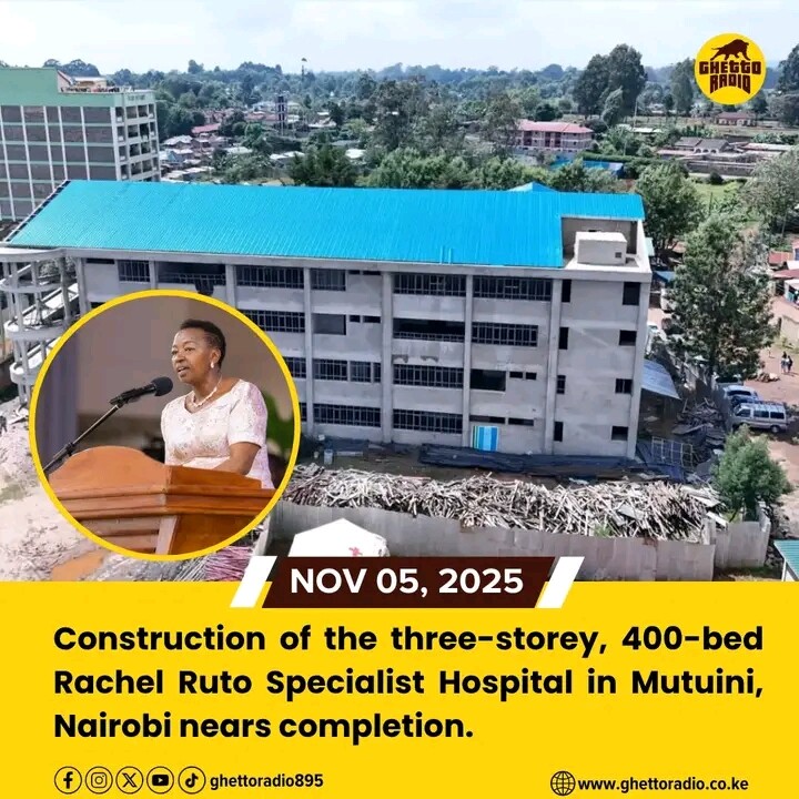 The construction of the proposed Mama Rachel Ruto Specialist Hospital – Mutuini, Nairobi County, is now 89% complete.Principal Secretary for Interior Dr. Raymond Omollo on Wednesday noted that , the three-storey, 400-bed facility will serve up to 1.5 million patients annually.