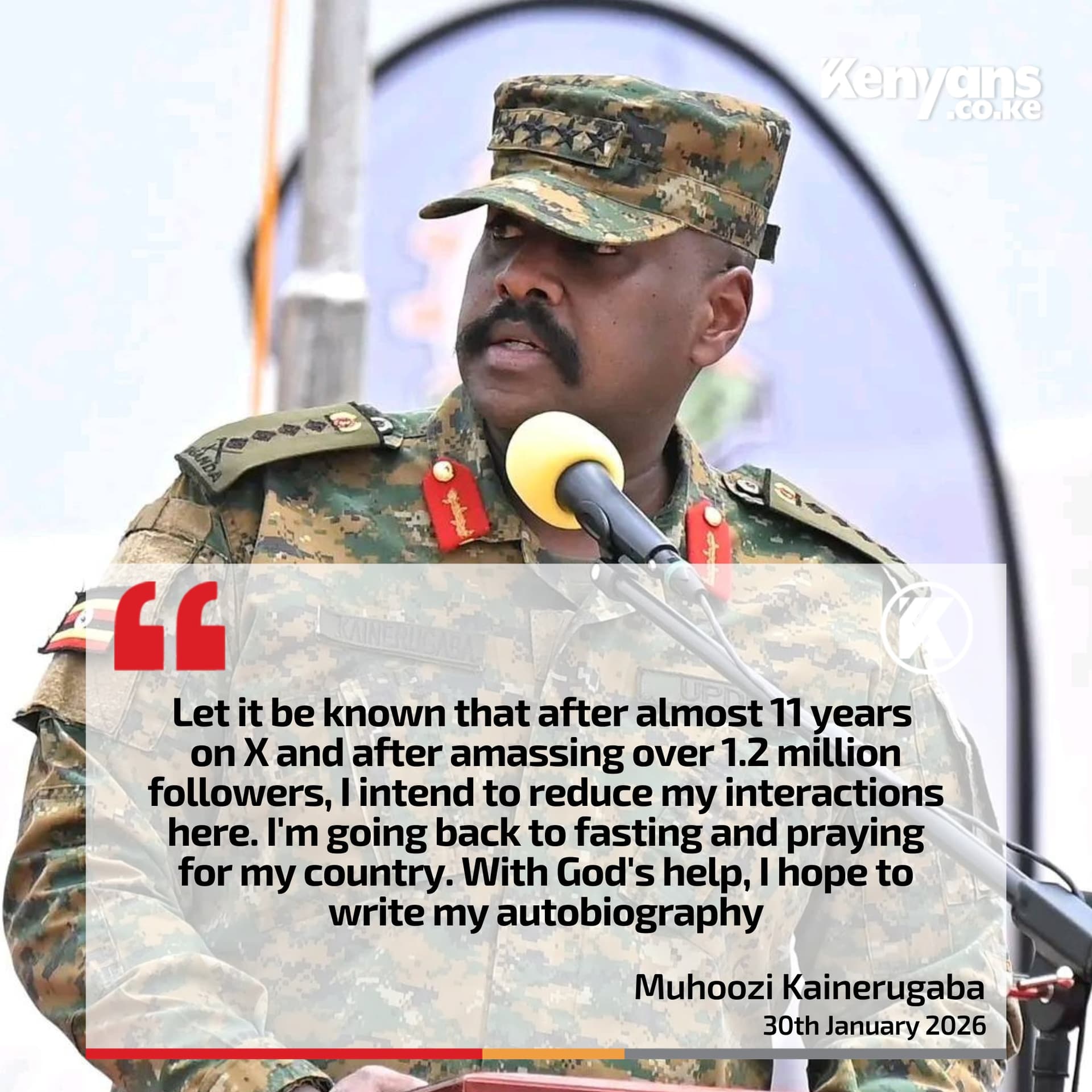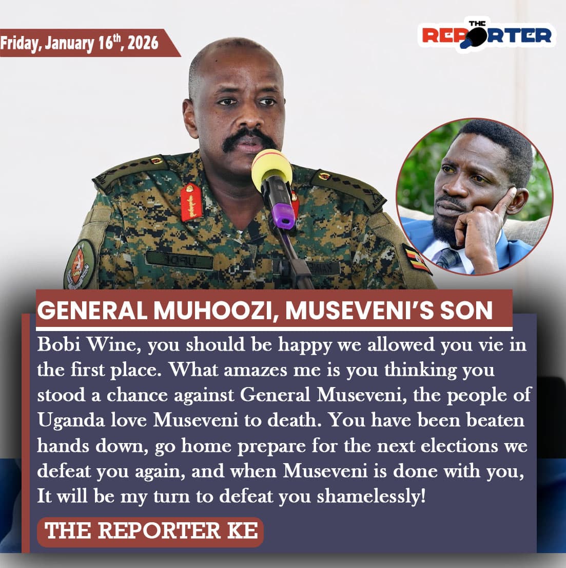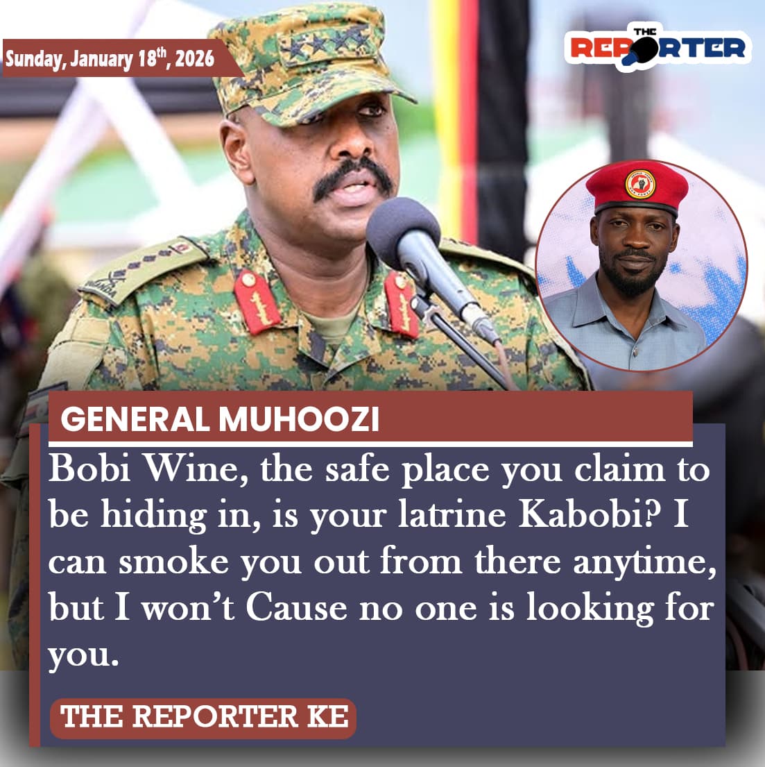 - Insults to the Kenyan Military (January 2026): He recently mocked Kenyan Special Forces in Haiti as “weaklings” and “marathon runners,” claiming the Ugandan army could do their job in a month.