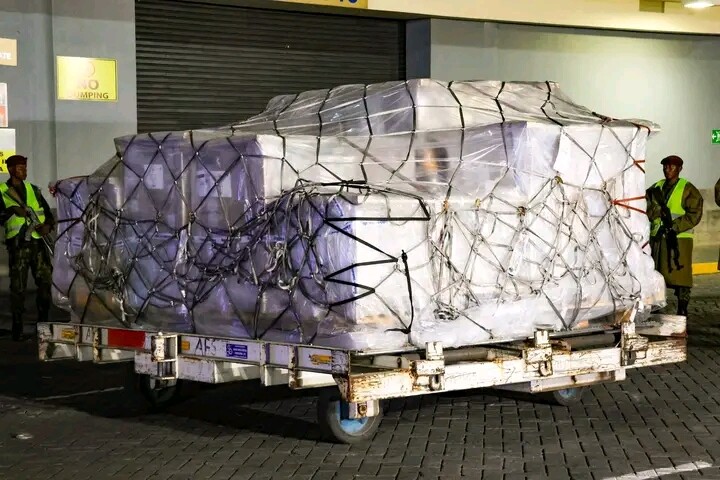 IEBC Chair Erastus Ethekon, accompanied by Commissioner Anne Nderitu, received the first batch of ballot papers and statutory materials at JKIA on Wednesday night, flown in from Greece at a cost of Ksh 27 million, marking the initial delivery of 10 pallets ahead of the November 27, 2025 by-elections.