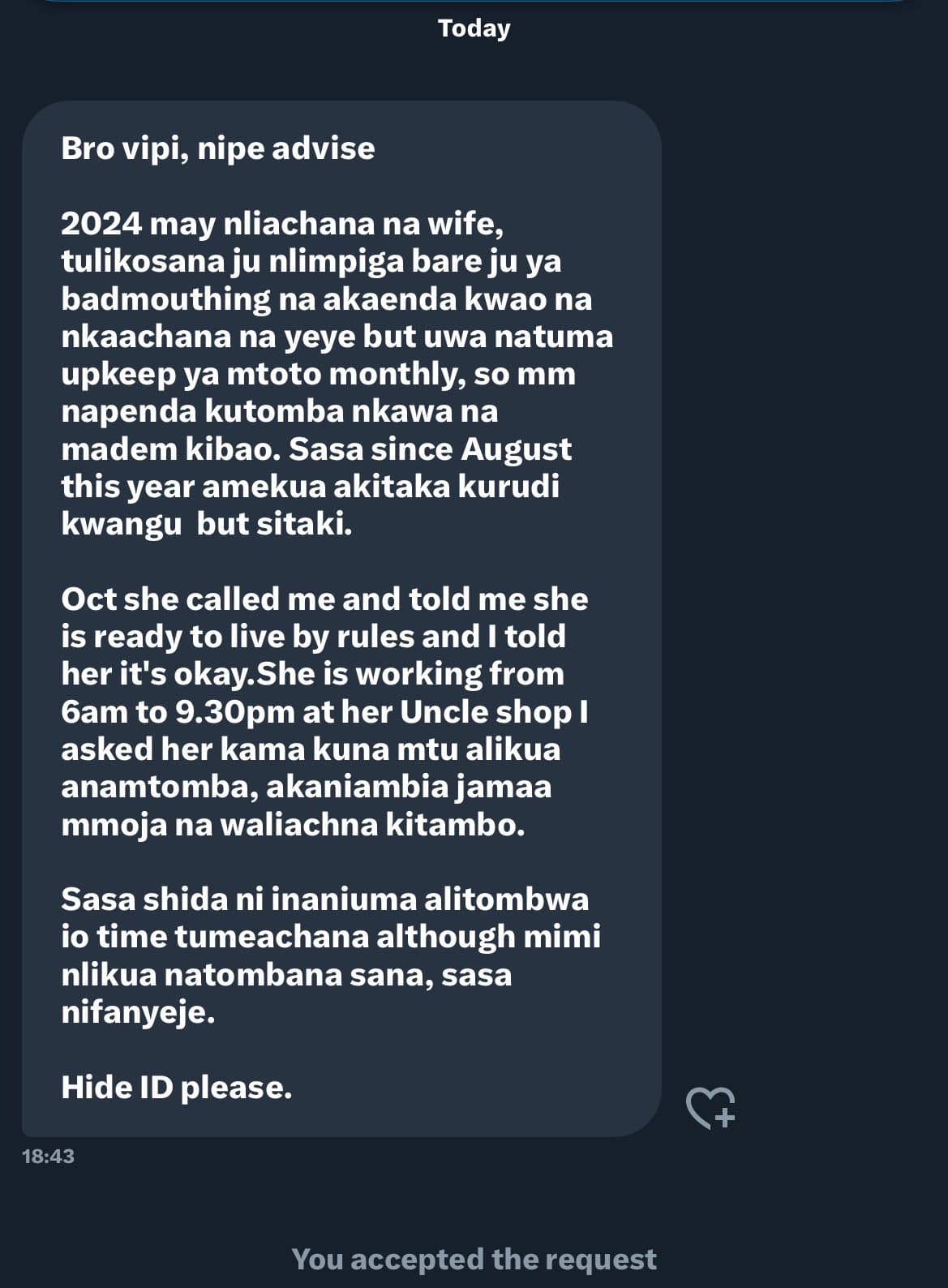 copied this from x. bibi akijam aseme ameenda kwao, jua harudi kama hajakuliwa. jiconsole vile wataka