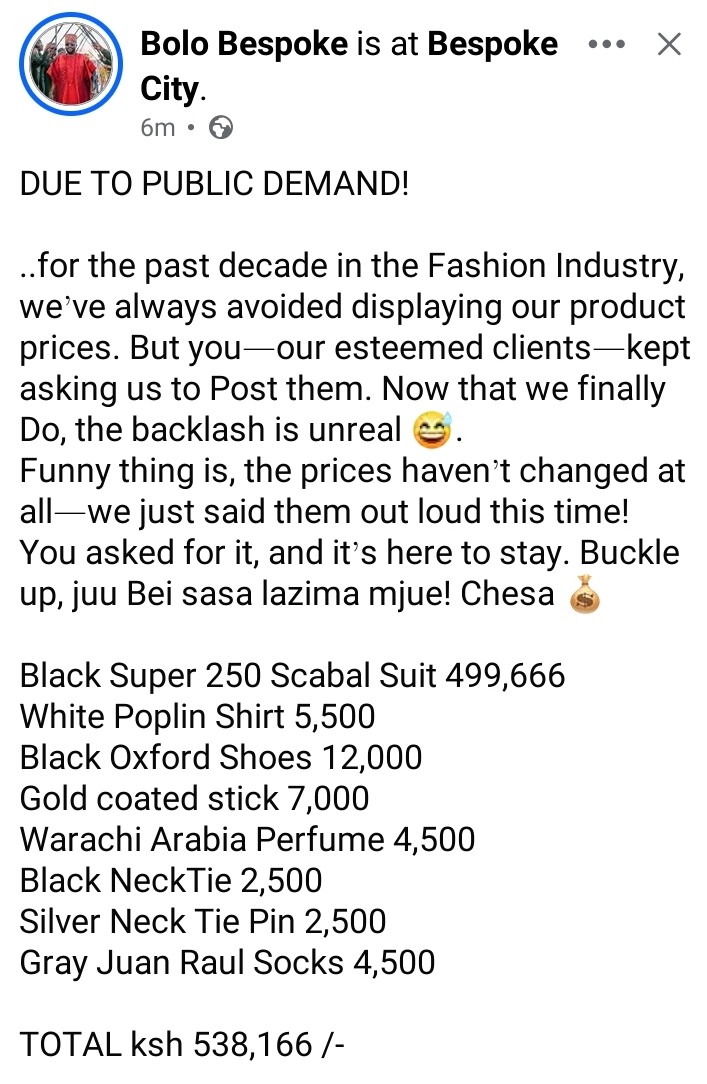 nani alimuuliza hiyo ujinga. hakuna mtu ali-notice hiyo suti that looks like any other suit so lazina atangaze bei ndio aonekane tofauti na mtumba.