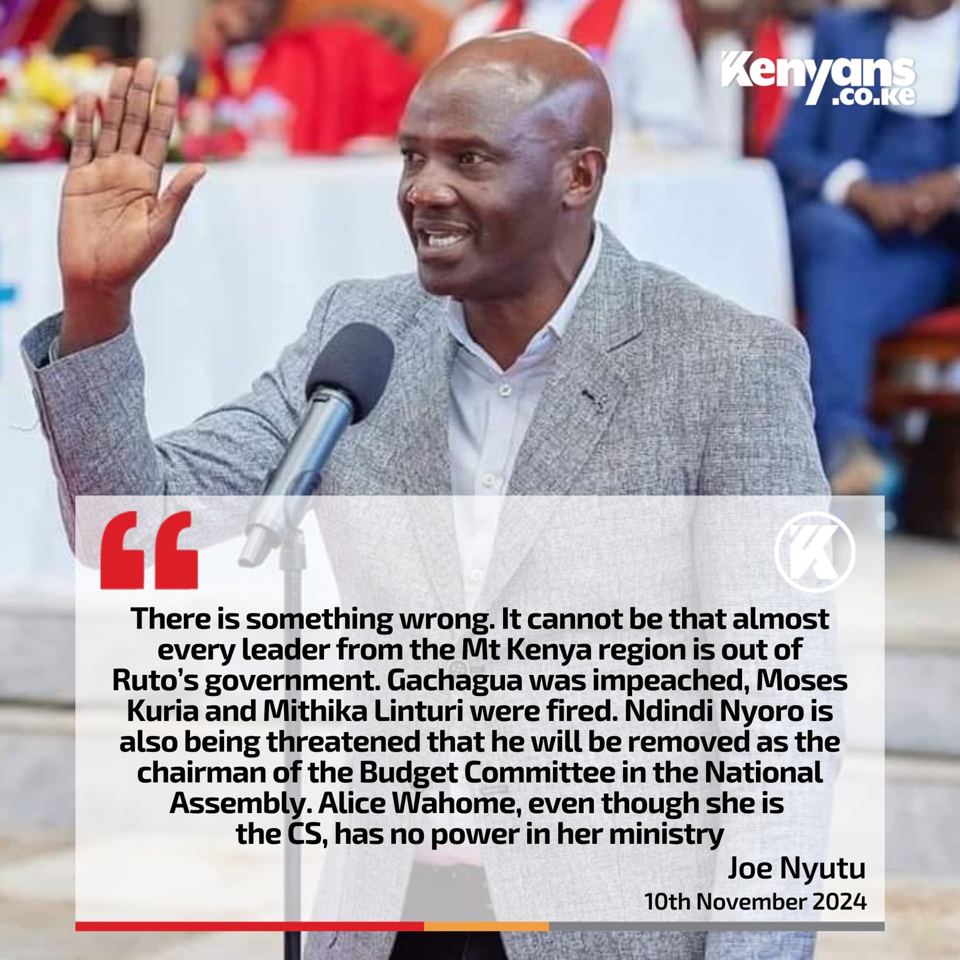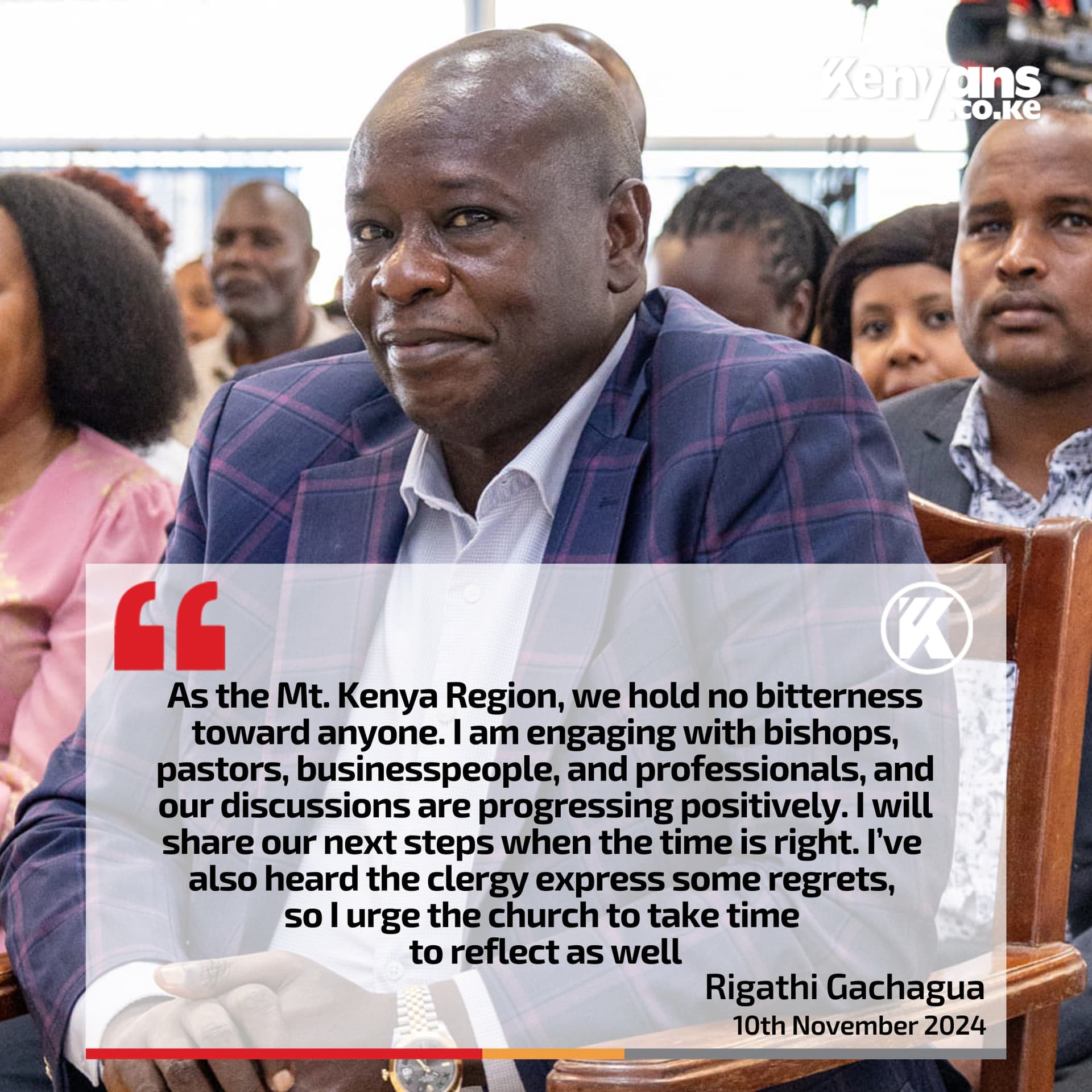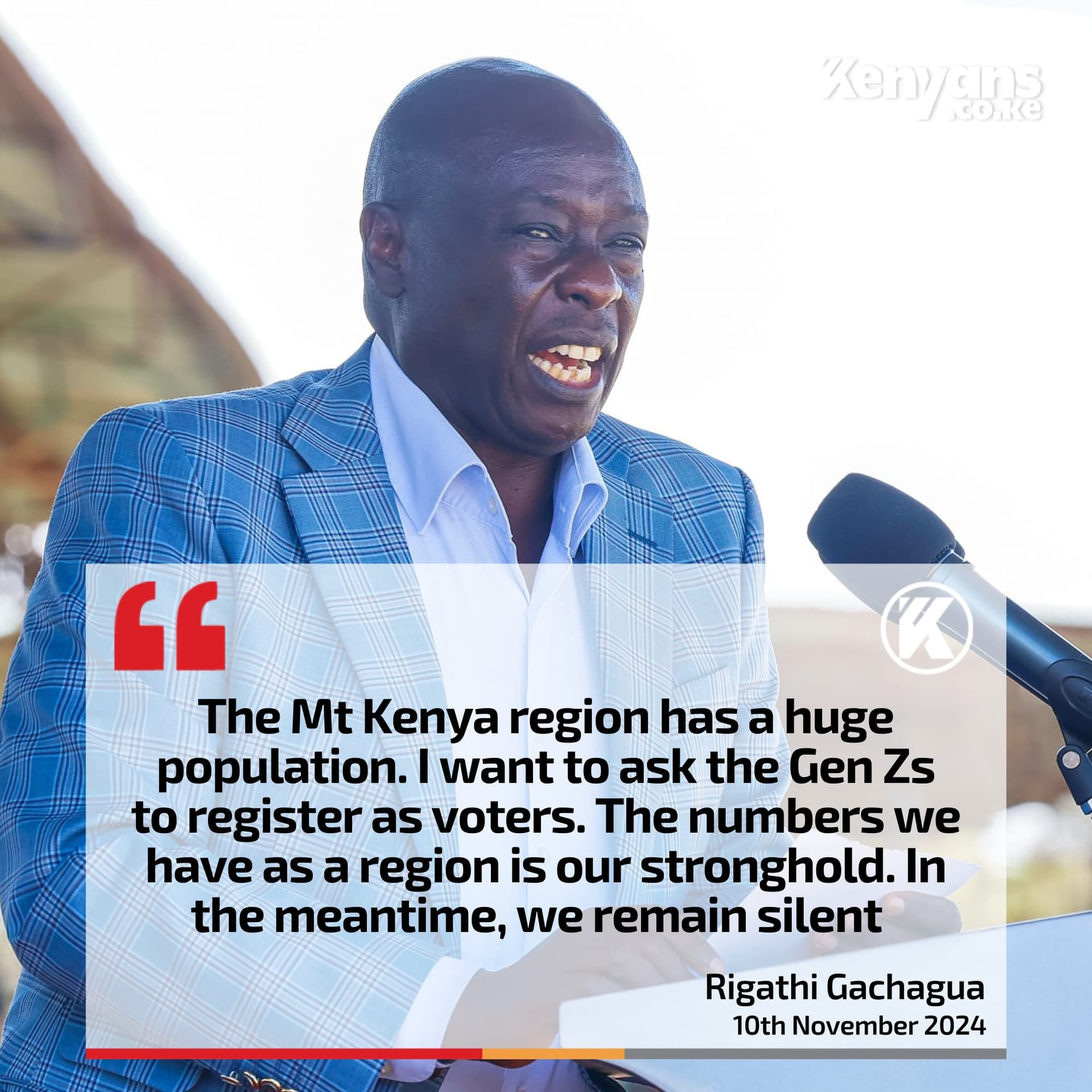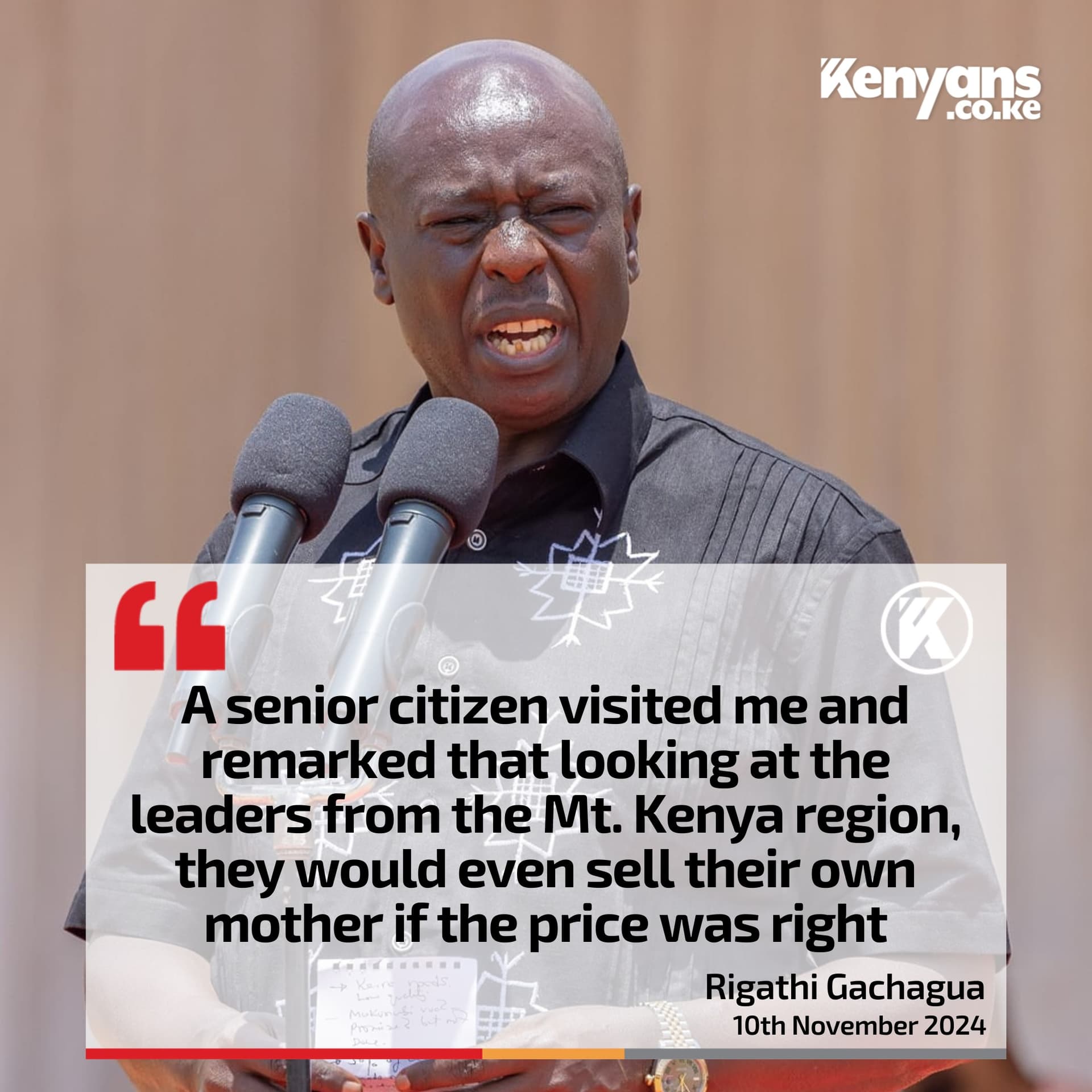 Kuria emphasized that the Mt Kenya region, despite being populous, could not succeed independently without the input of other regions particularly because Mt Kenya residents are mainly traders and thus heavily depend on the rest of Kenyans to purchase their products.