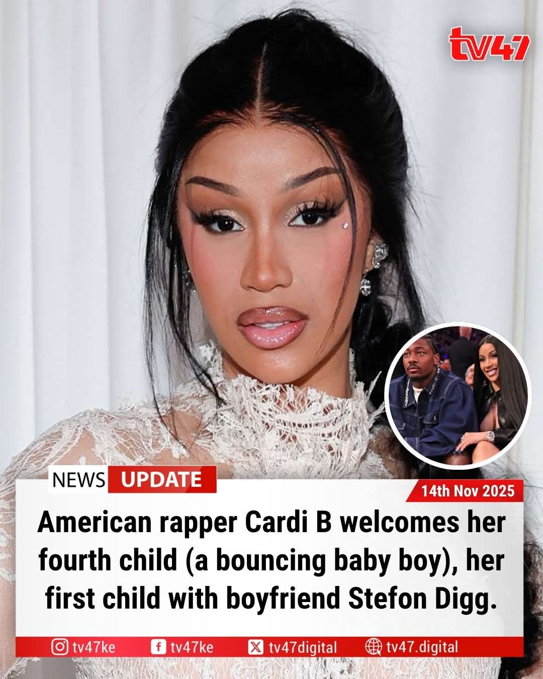 Cardi B gives birth to her fourth child but first child with her hubby