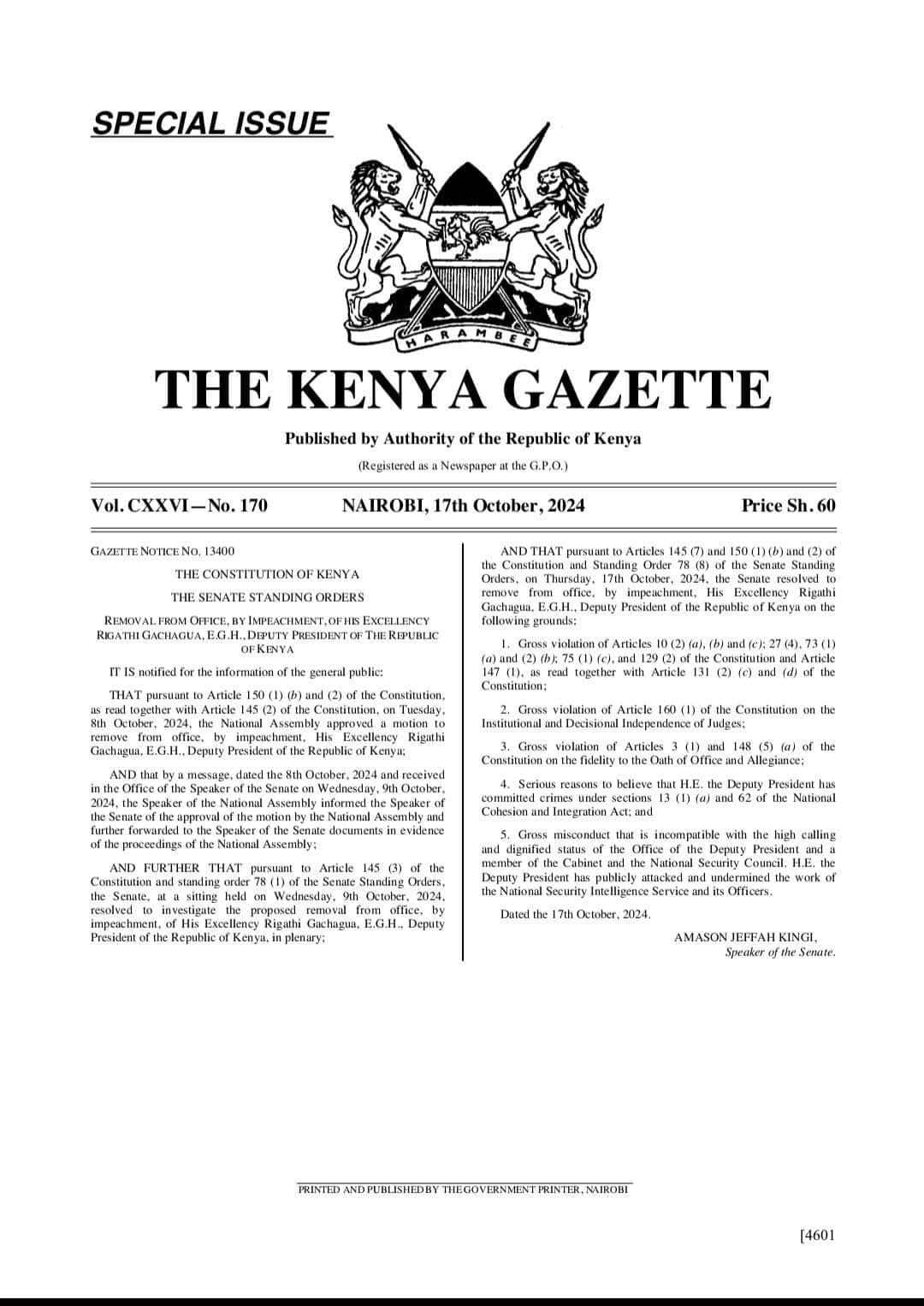 “Many are asking questions. I want to tell you Kenyans to be patient. We will explain one by one after we are done with our work,” he said, referring to Gachagua’s upcoming date with destiny when the DP will appear before the Senate for the trial to defend himself against 11 charges.