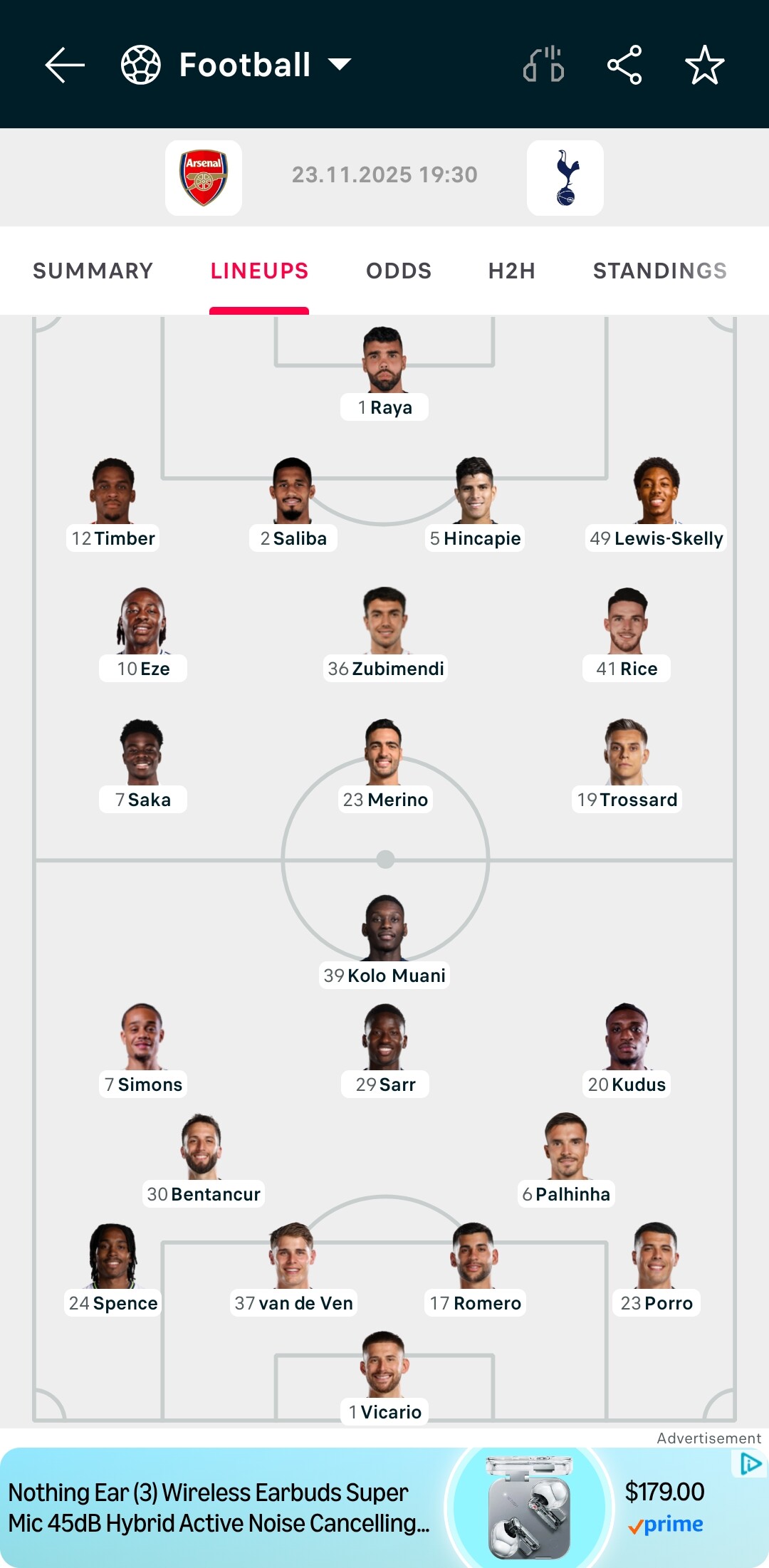 Tottenham in the 1st half vs Arsenal: