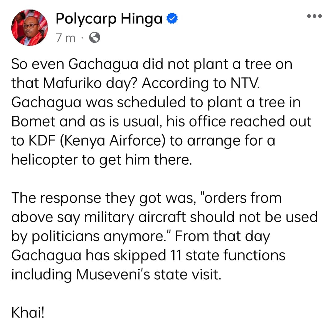 He also missed the tree planting day that occurred on May 10th, which saw all cabinet secretaries and the president involved.