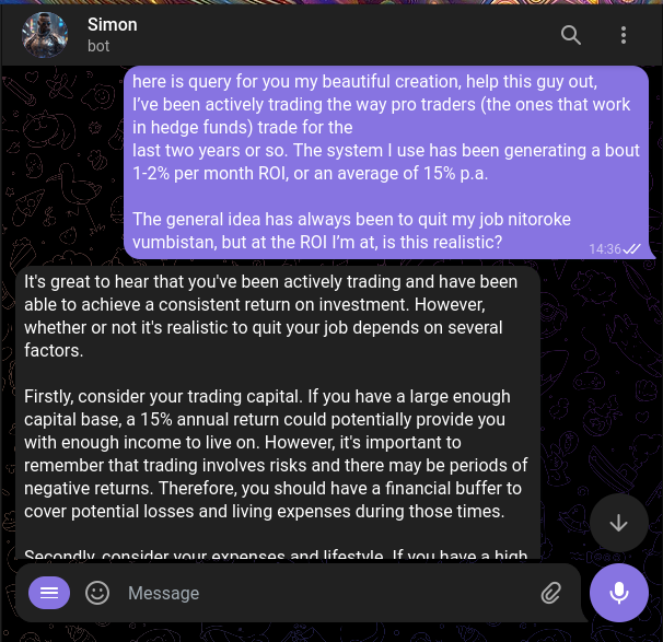 Acha kudanganya watu; kama una make less than 5% profit monthly, wewe si “good trader”, and you are hardly scrapping by You can hardly make a living unless you have multimillions invested.