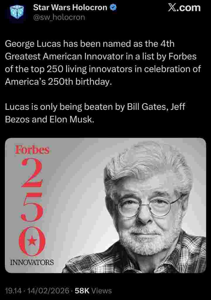George Lucas (star wars creator) named 4th most innovative American