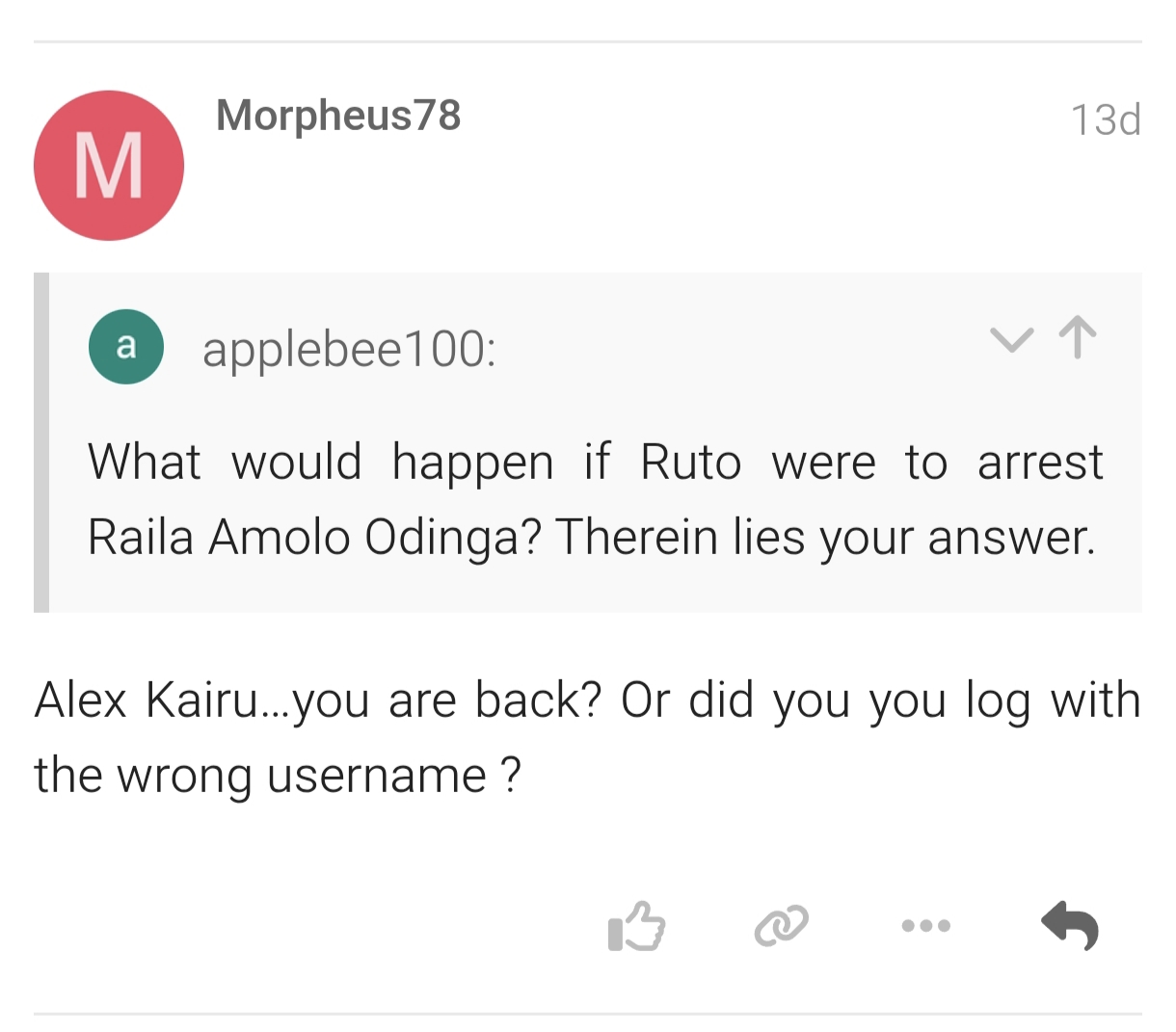 I wonder if it’s the same Alex who married Ngina, lol. What a fucked up decision lol.