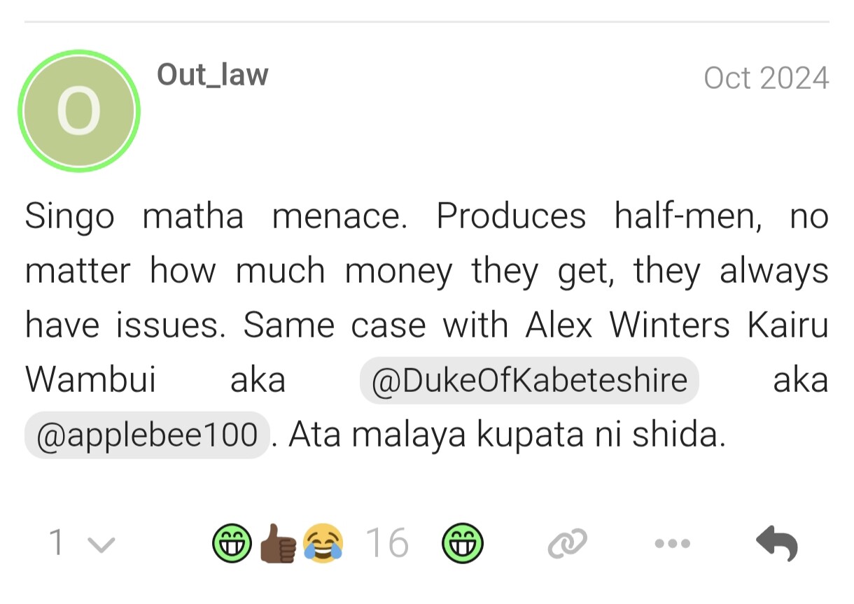 This Alex is a delusional know it all who claims to be an IT bro in US, Canada, Kabete etc yet doxxed himself on a platform like KTalk. All his details are on here na sio siri