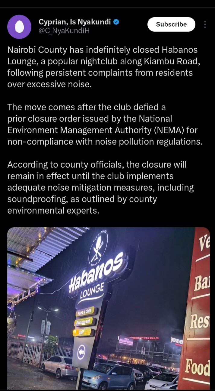 @Landlord fake news..Ni noise pollution .Hapa Sakaja ni pesa ya hongo anataka.Tell one club he has closed over noise pollution that is not operating @Maize_Combuster