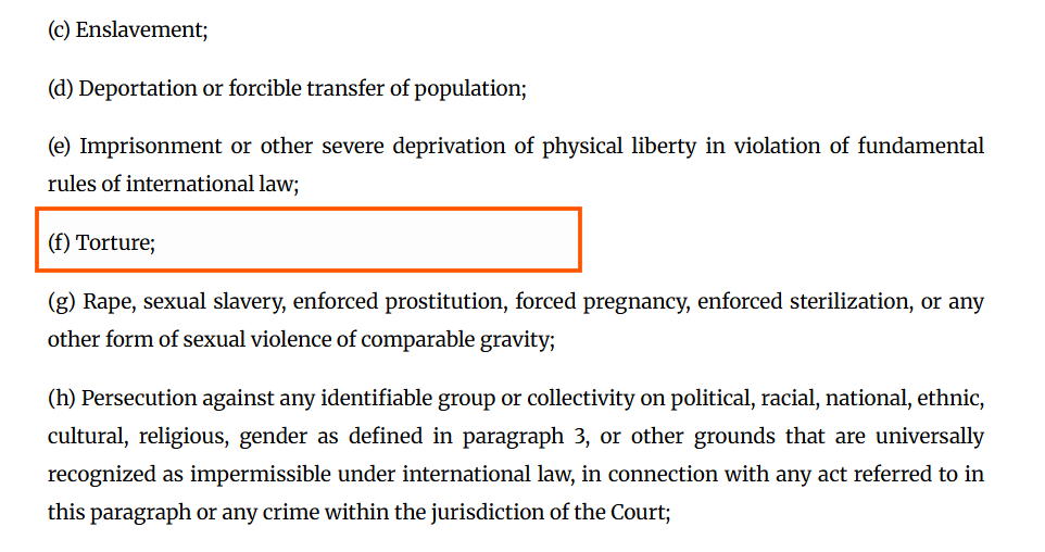 - Article 7(1)(f): Torture