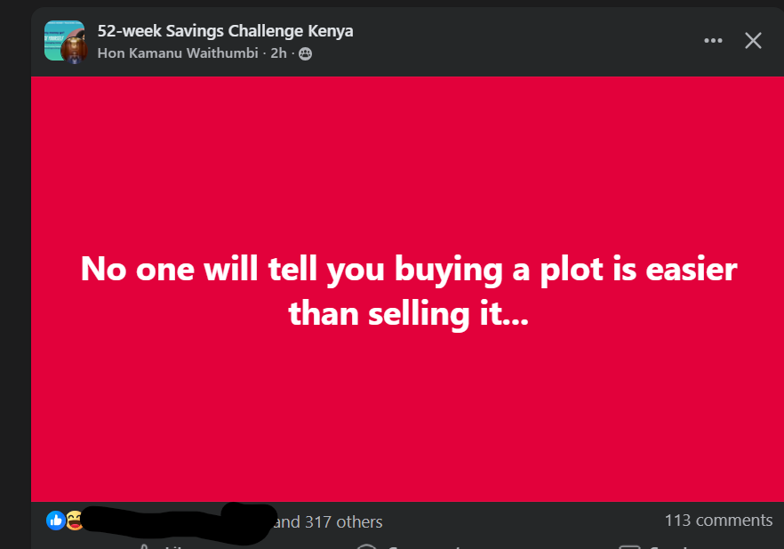 Siri ya plot ni ikue on sale from like year 2 if you don’t intend to develop it. No pressure, bora mtu afike bei ume set. Last plot I sold, jirani developed his akaweka hardware and ikashika. Kitu he looked for me, I set my price, akaruka, nikasema no problem, ata ukitaka kuweka water tanks kwangu wewe lete za macho monthly..after a few months he called twende meeting na bank yake for financing