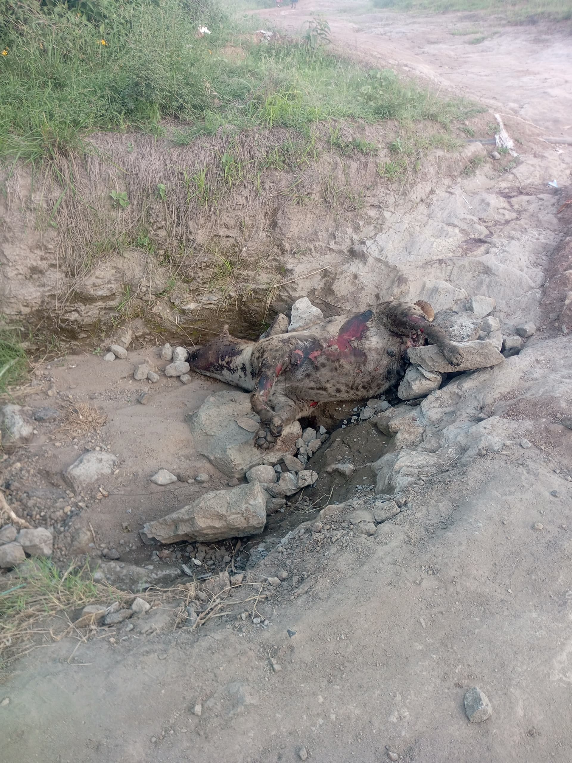 On my way to deliver napatana na dead hyenas, I ask around m told this are blood thirsty hyenas , they target small human kids . People around here live in fear…
