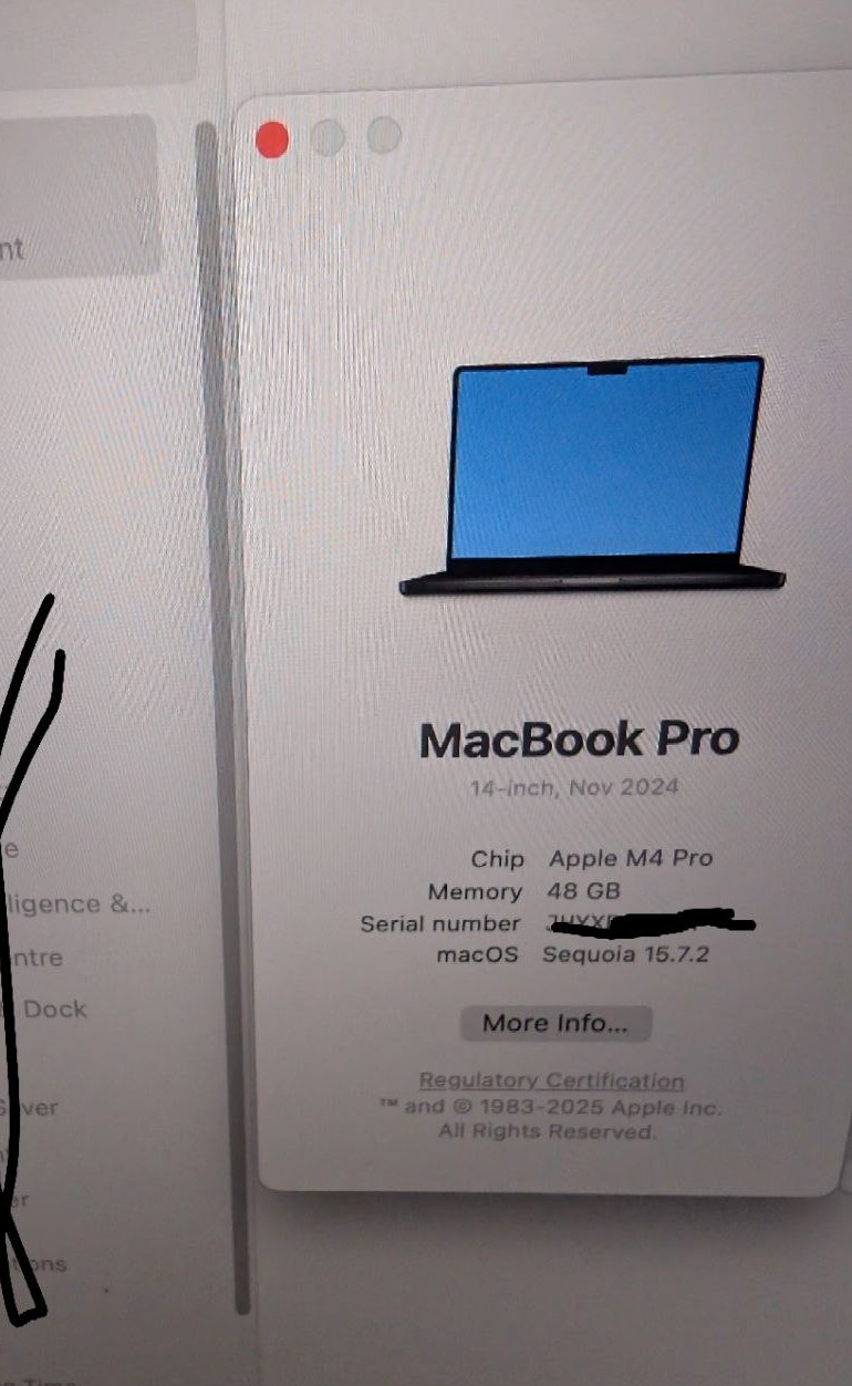 m4 pro, 14 core cpu, 20‑core GPU. Better than the latest intel core i9 chips