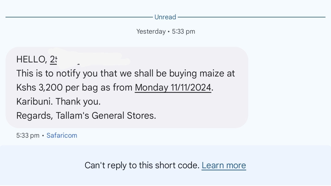 Only lazy farmers who produced less than 15 bags per acre will cry. Even if I sell at the latest NCPB price of 3,500/- per 90kg bag, I’ll still make a profit of 79k per acre which translates to about 88M from my Trans nzoia farm. I harvested, shelled and weighed maize from my main farm down at the coast so making a net profit of more than 11M per month from maize alone is not a loss to me.