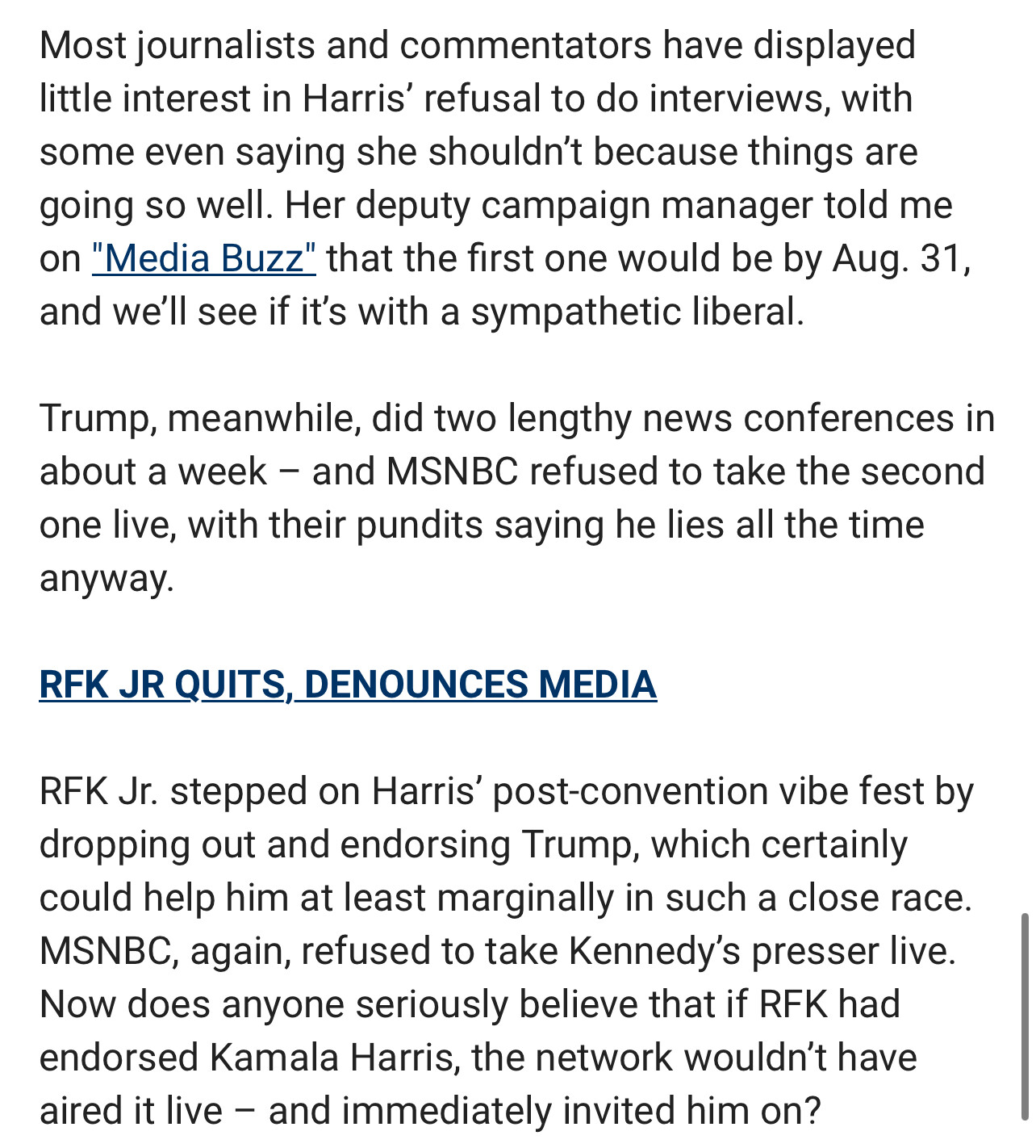 Can you imagine a Fox News poll puts her ahead by 2%. Which means reality is 8-10%.
