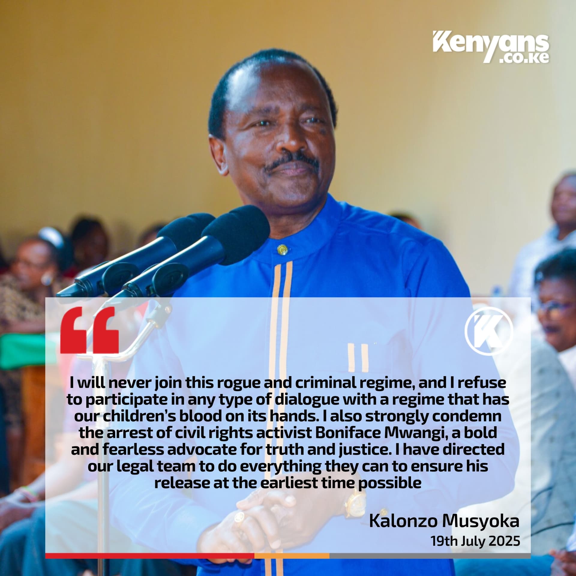 “After Saba Saba, I called him again, this time to ask him a question. I asked him, as a person who has, throughout most of his life, fought for Kenyans, how his conscience sits with the continuous blood-letting by the Kenya Kwanza (KK) regime,” Karua said.