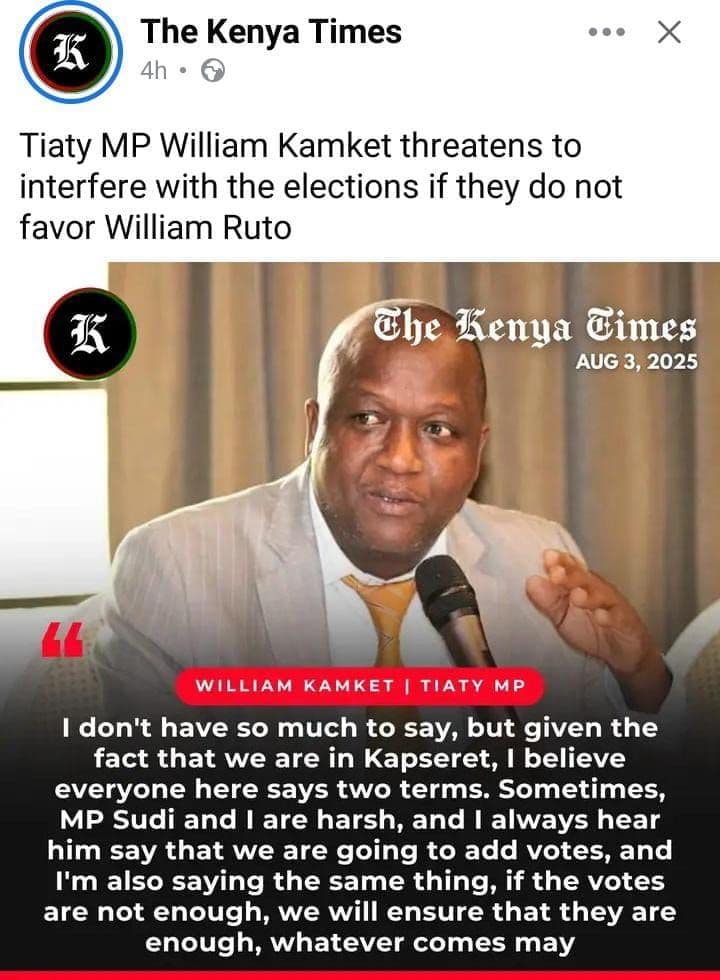 “The clip in question, recorded during the funeral of the late Hosea Kiplagat in 2021, has been stripped of its proper context and paired with a distorted transcription to deliberately mislead the public,” the party said.