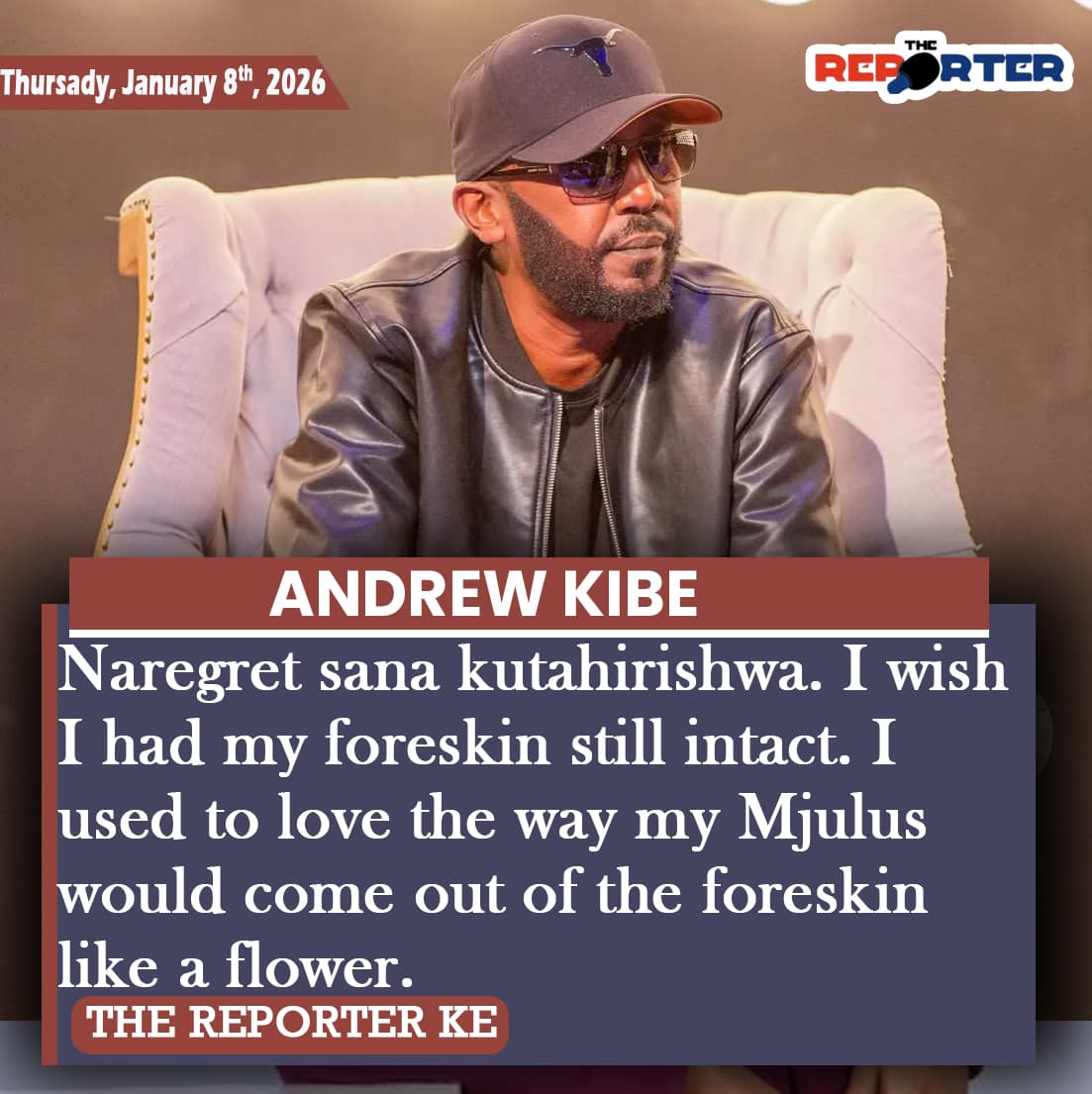 Kibe revealed that he will not circumcise his own son, criticizing the reliance on anaesthesia to mask pain.