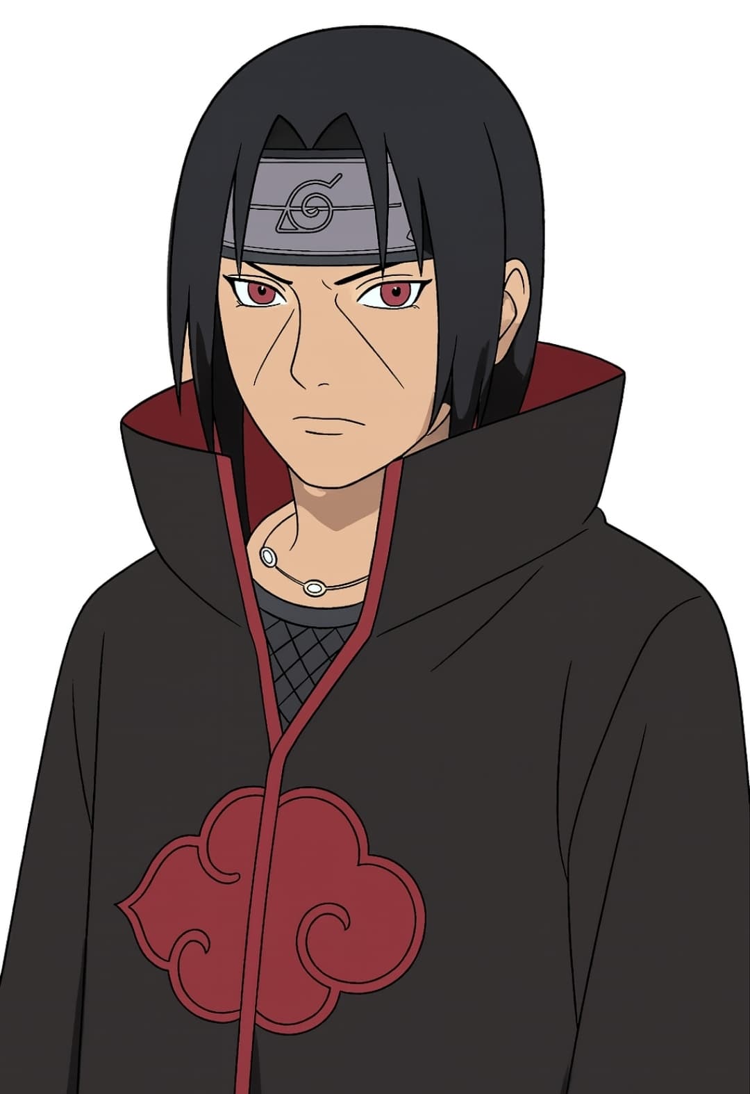 - Eyes: Crimson red with black tomoe.