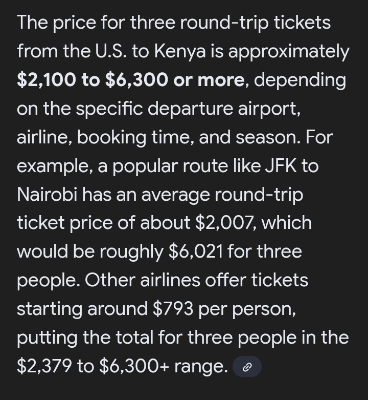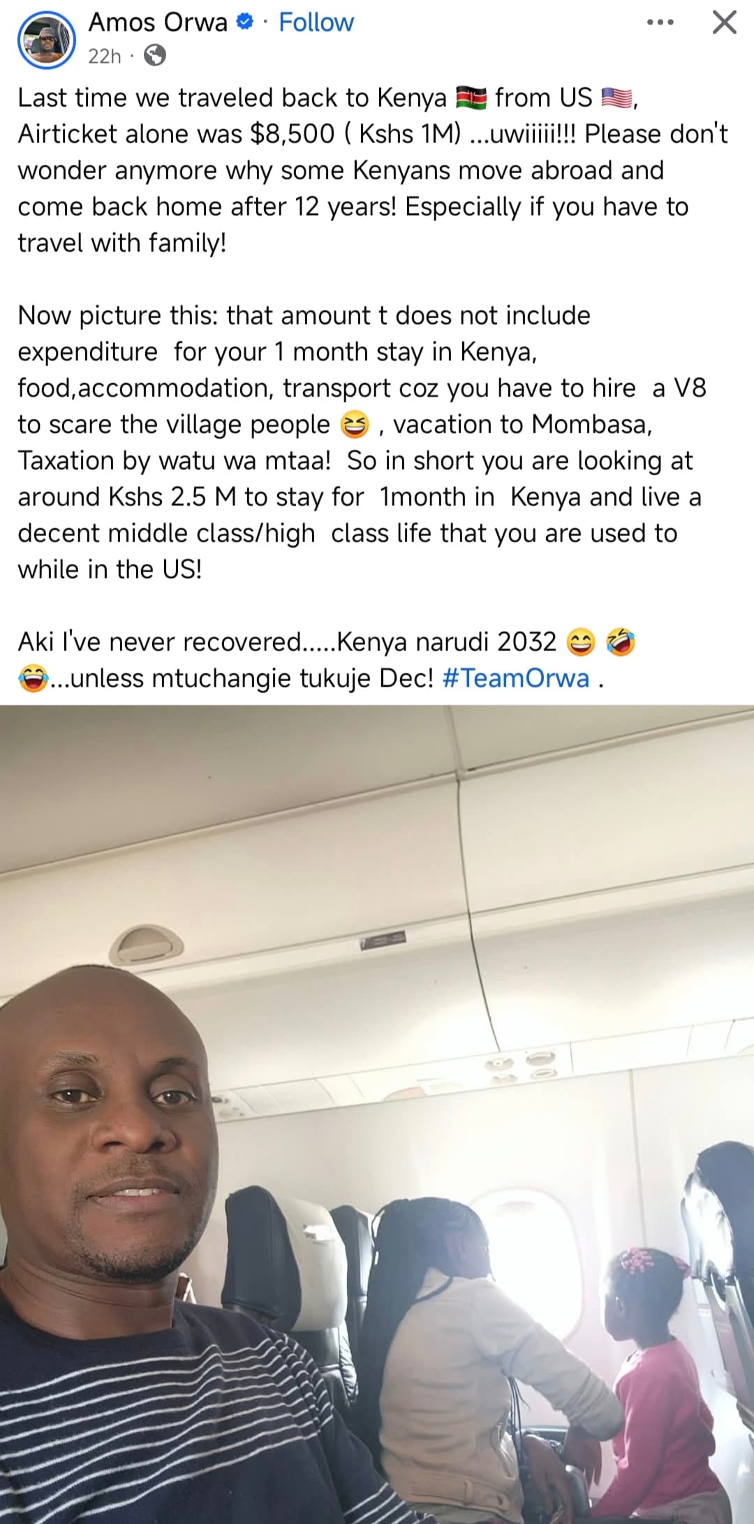 Last time we traveled back to Kenya from US , Airticket alone was $8,500 ( Kshs 1M) …uwiiiii!!! Please don’t wonder anymore why some Kenyans move abroad and come back home after 12 years! Especially if you have to travel with family!
