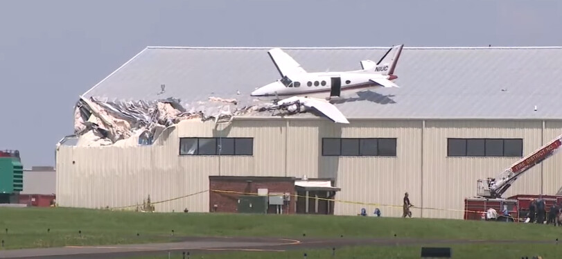 “A photo from the scene provided by a witness showed the aircraft on the sloped roof of a hangar.”