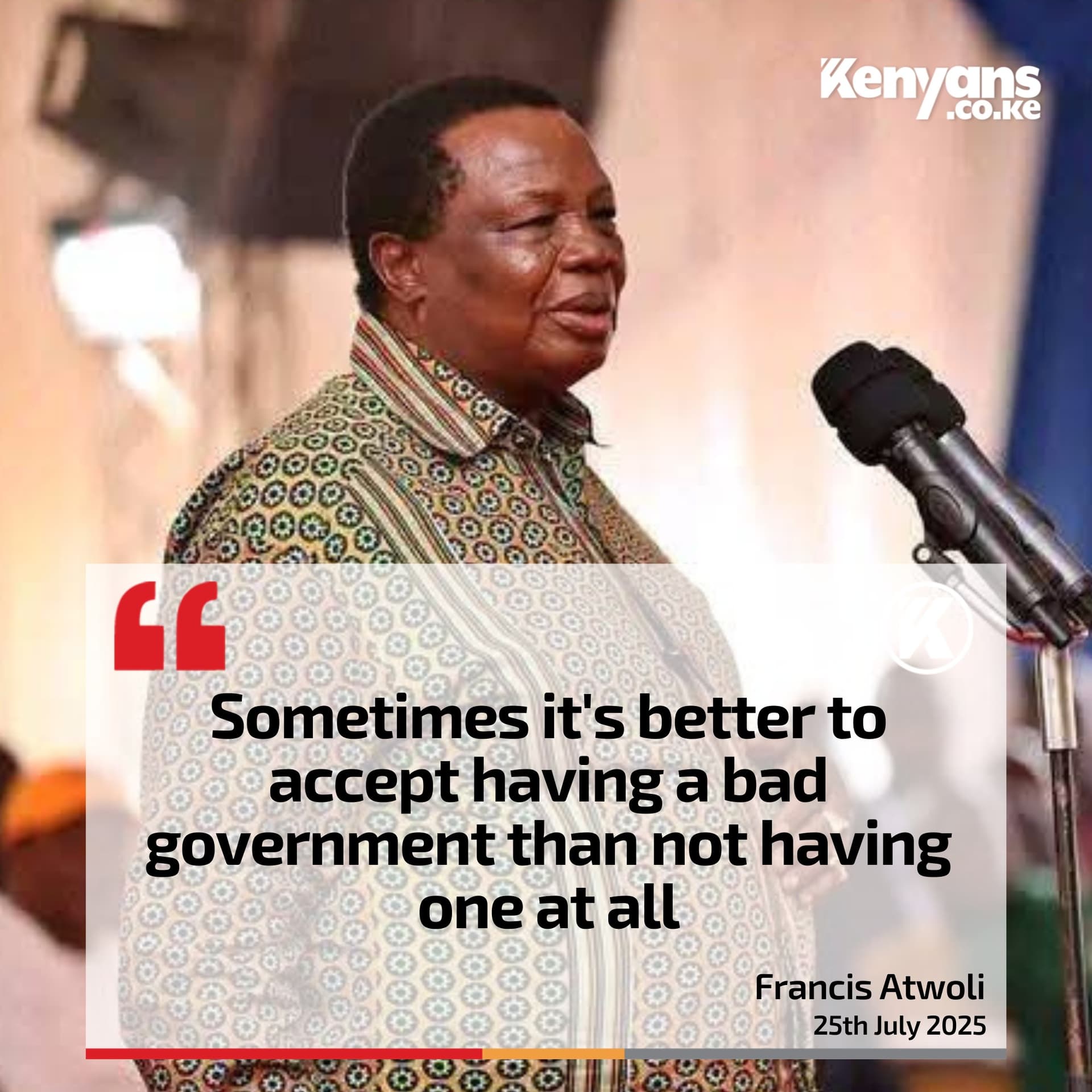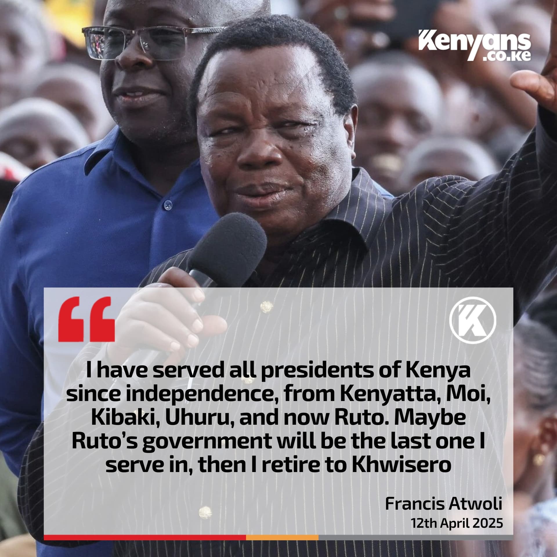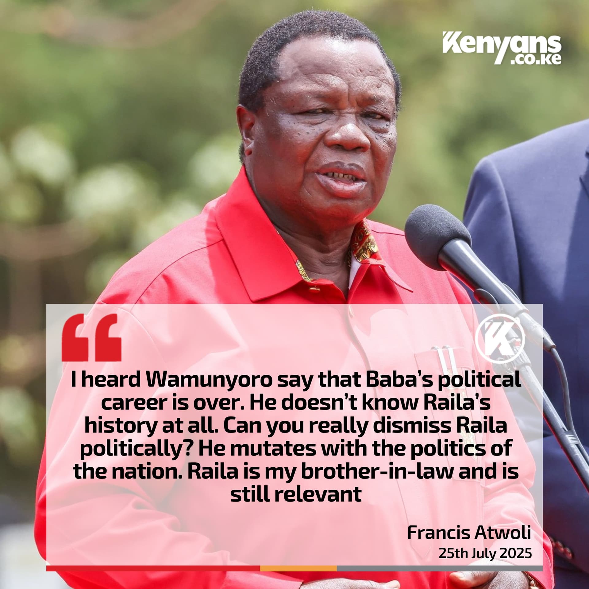 “Atwoli, I beg you, you are my senior in age, but in politics, I am your senior. At our age and experience, we are supposed to sugarcoat something when it’s wrong,” he asserted.