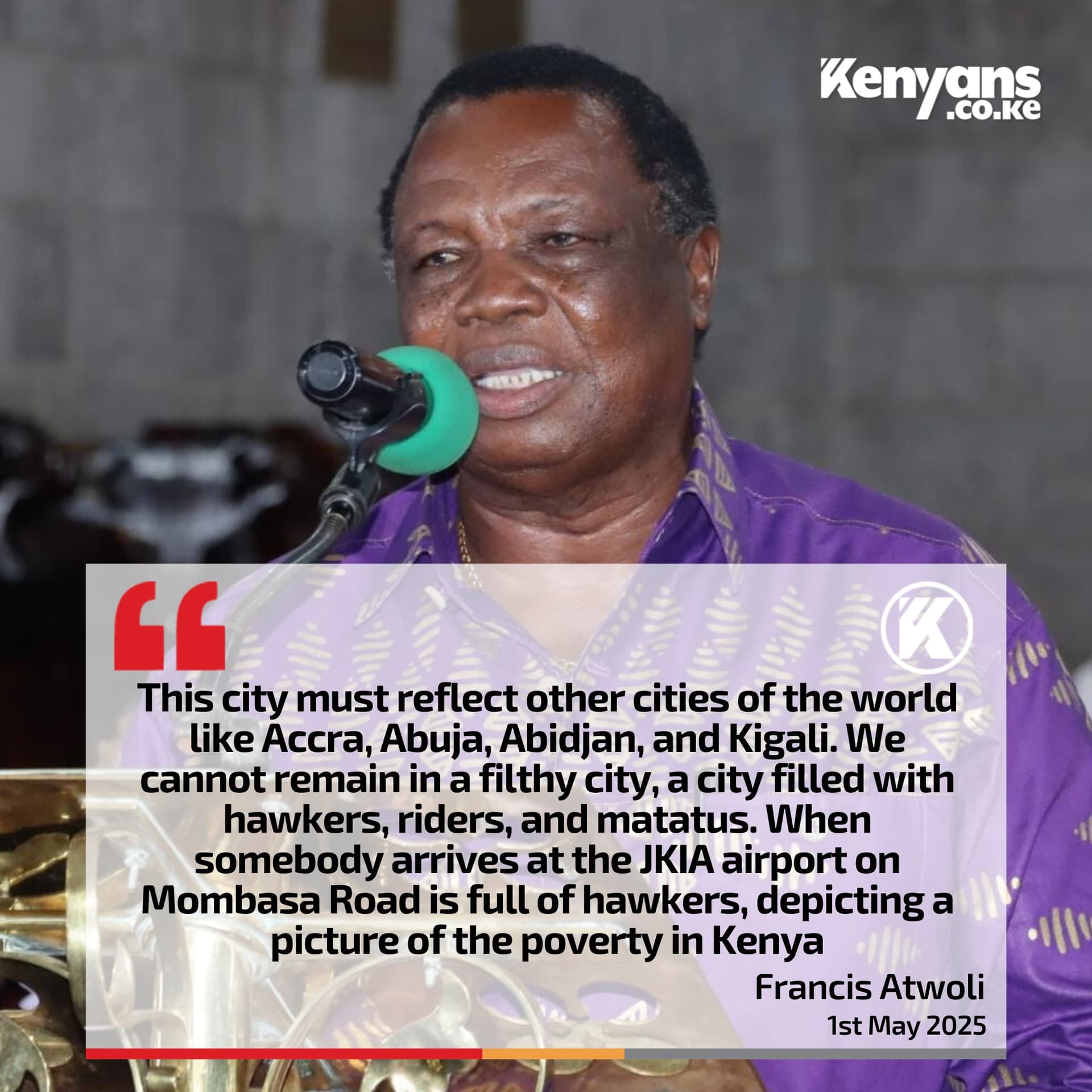 “Even the national park, where we have animals, must be used to develop Nairobi. We need a new Nairobi with roads, facilities, and proper industrial parks because it is only Nairobi that has not been decongested in Africa,” Atwoli said.