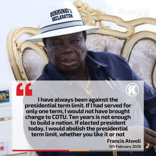 “Kenya we have set a precedent of Presidents completing their two terms in office. Ruto will not be different. So get prepared for him lasting ten years,” Atwoli noted.