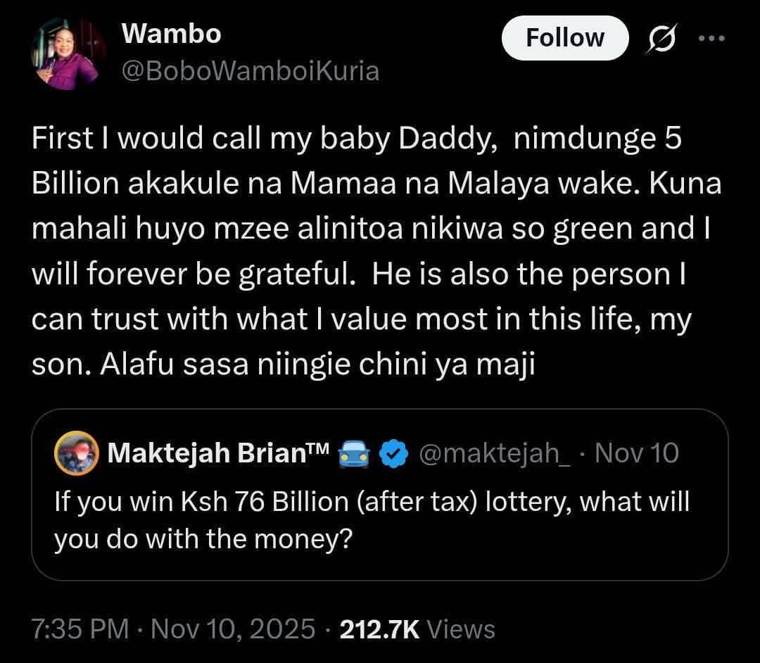 Sasa si utabaki na yeye na 71 Billion. Akisha dunga baba mtoto 5B.