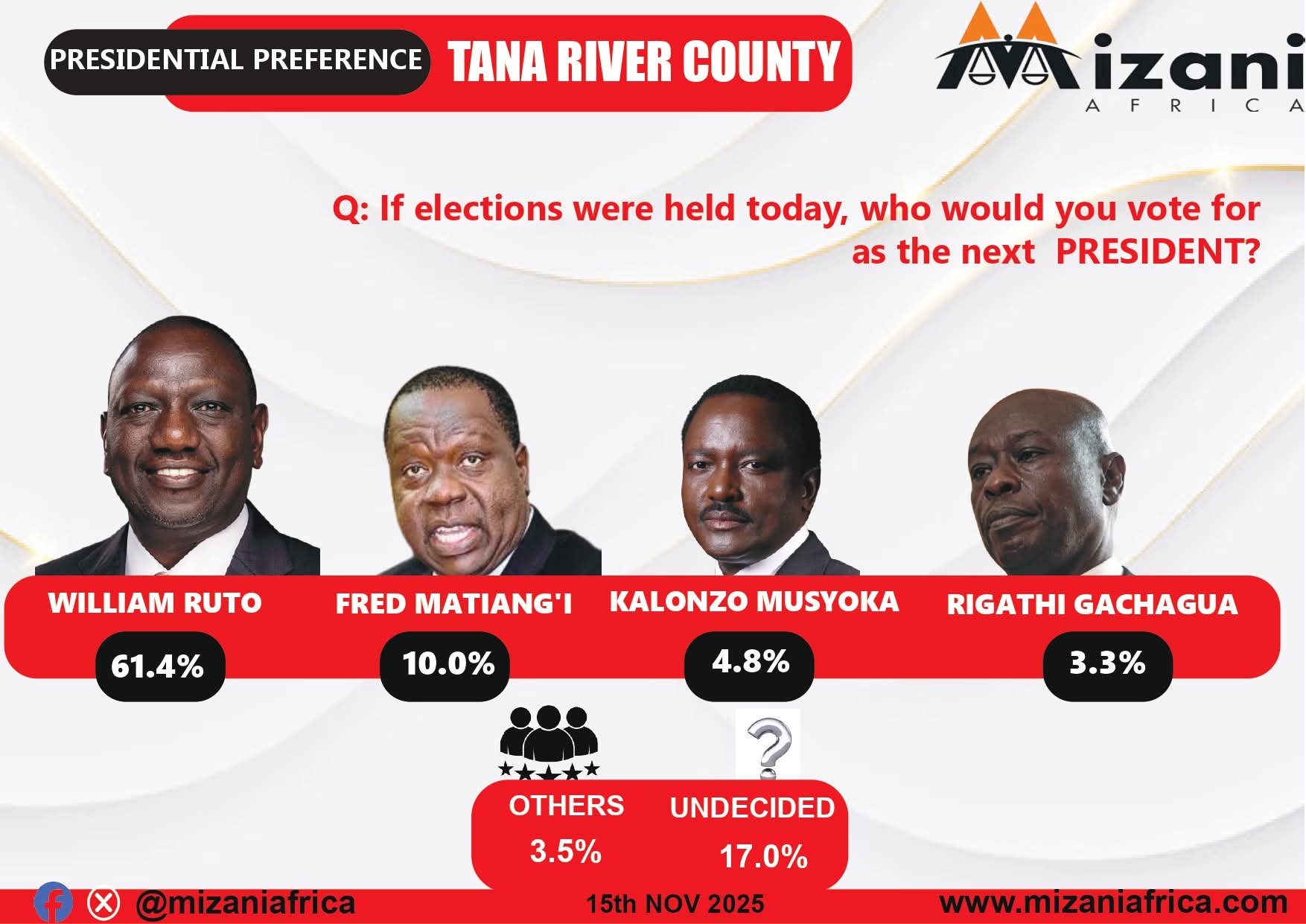 Ruto will win Tana River county by 64% in 2027. Mizani polls