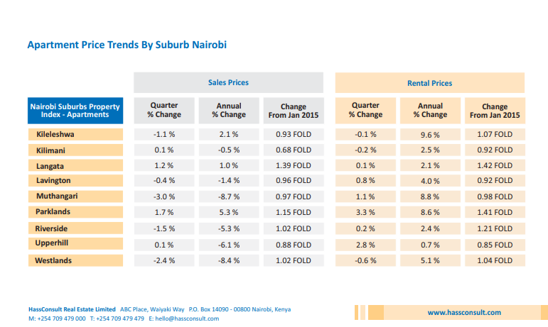 There ARE places experiencing the opposite effect, namely parts of Westlands and Kileleshwa. There is demand for specific types of housing units and specific locations in both estates that has led to positive returns the past 10 years.