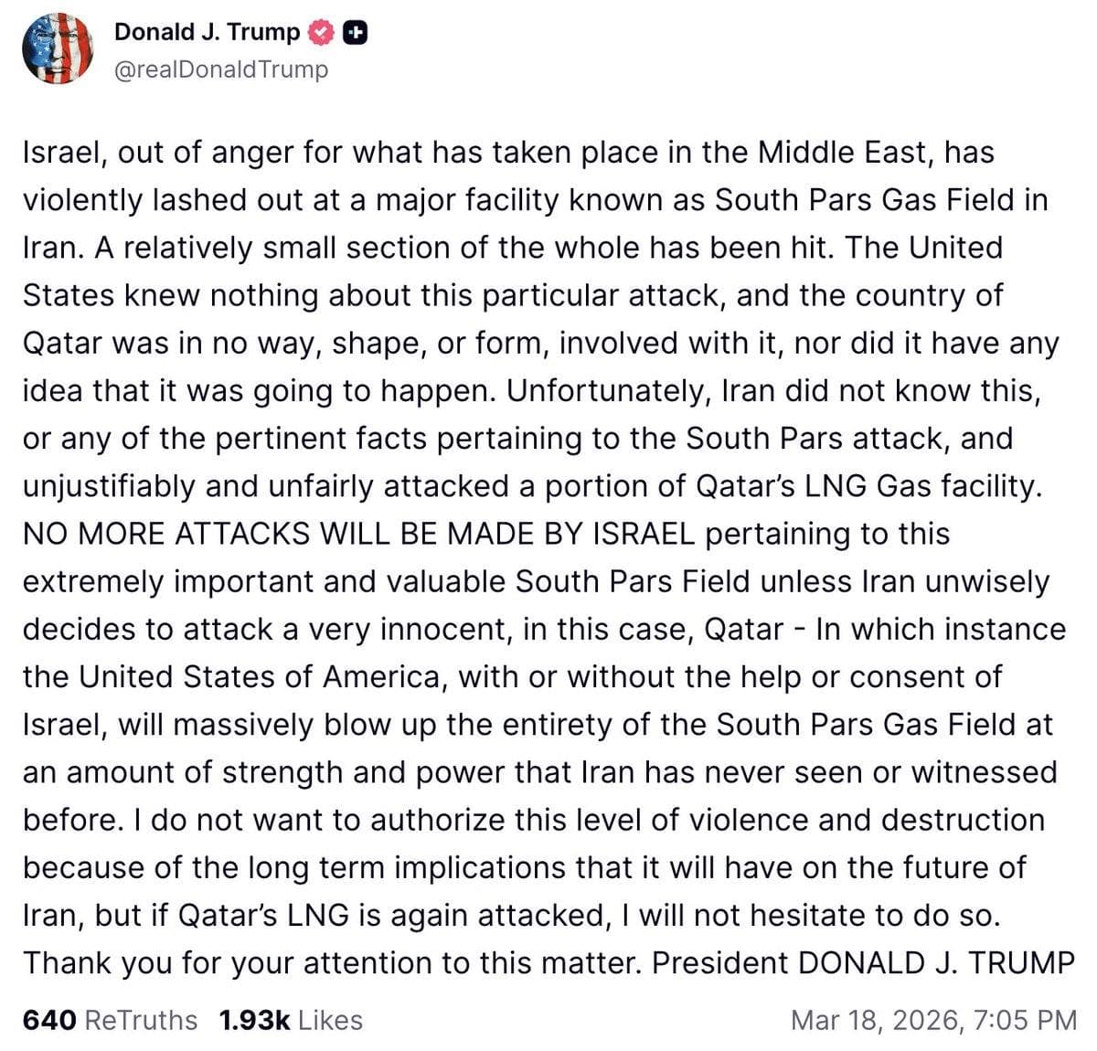 Trump just threw Israel under the bus—claiming the U.S. “knew nothing” about the strike on Iran’s South Pars gas field—despite earlier Axios reporting it was coordinated with and approved by his own administration.
