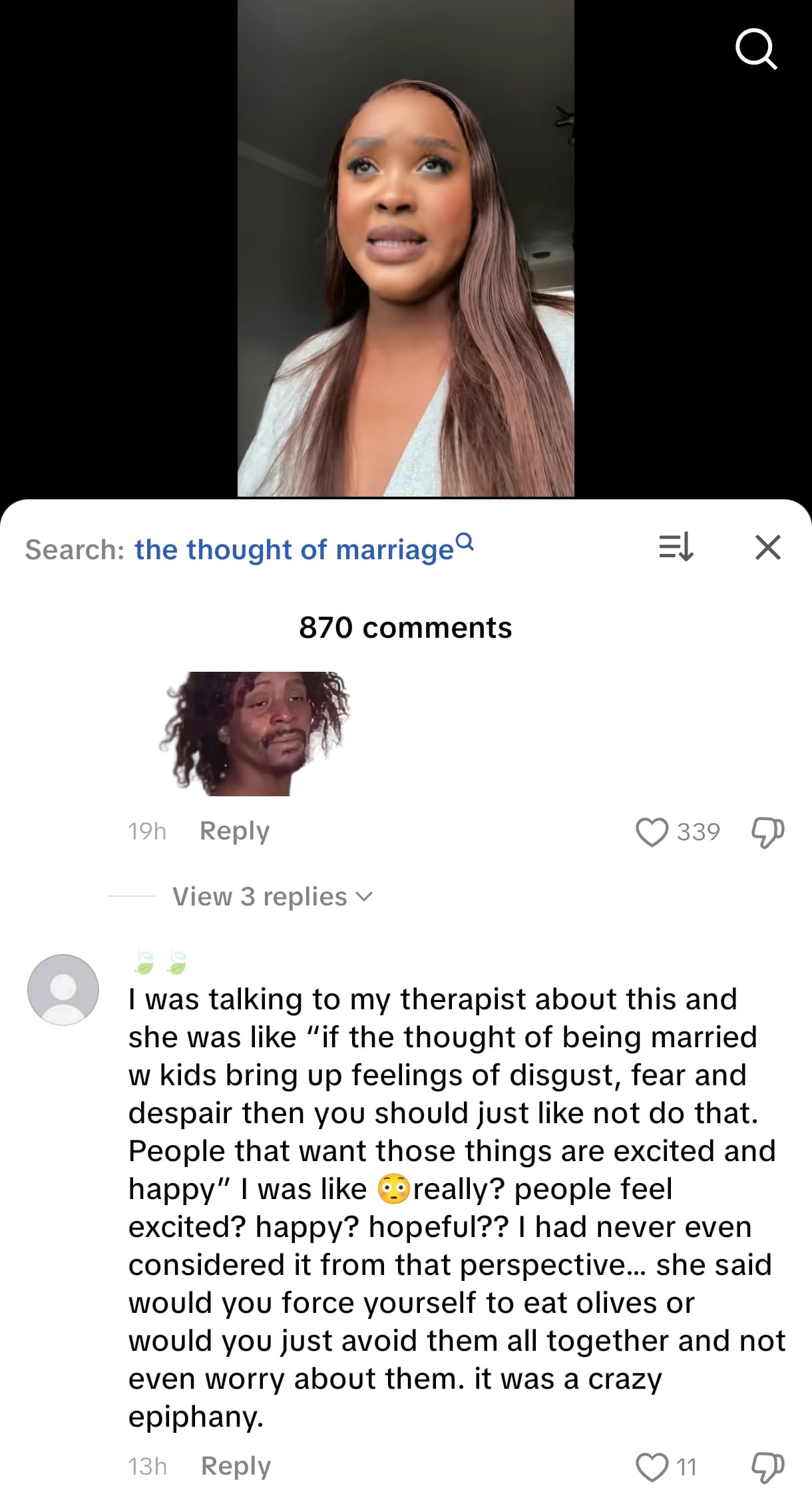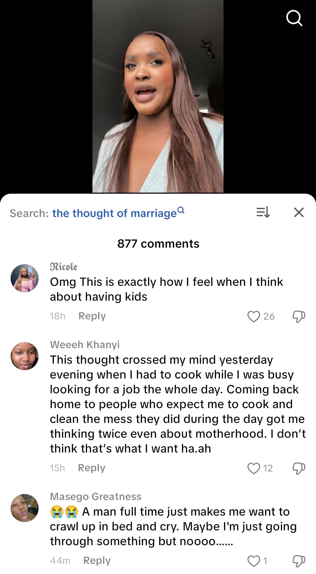 Nobody should feel ashamed or struggle to admit they don’t want marriage. You don’t need an explanation. A woman’s intuition is always right. Look at how this woman is struggling to fight her conditioning to finally admit that she doesn’t want to get married. Women are so brainwashed by the Patriarchy. Hadi you can’t say it with your full chest.